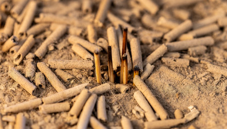 Earthy tones and detailed texture of the remnants of ceremonial incense. Shallow depth of field creates a calm, contemplative background for wellness content