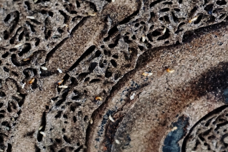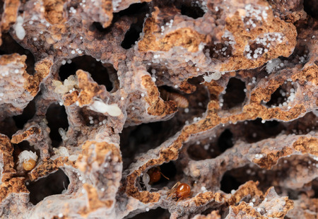 Close up of termites in wood at home.