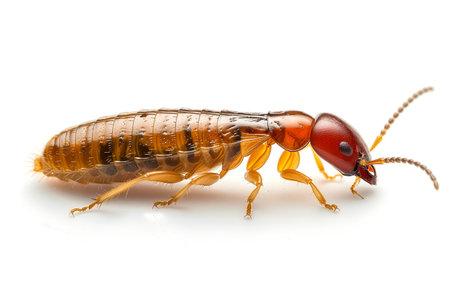 Termite dorsal top down composition legs evenly splayed segmented body in sharp focus on white