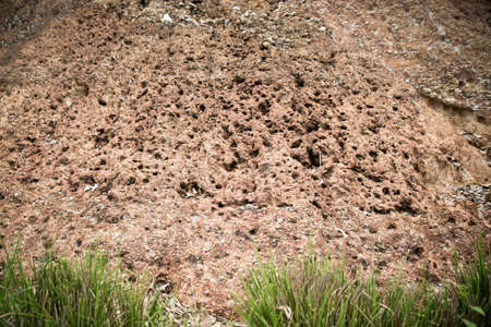 Ants are making their home and Digging the soil from inside is bringing it out. Anthill of Ants in ground.Colony of Ant work together to make their nest deep inside the field.