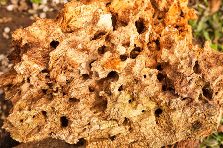 nest termite, background of nest termite, damaged wooden eaten by termite or white ant (selective focus)
