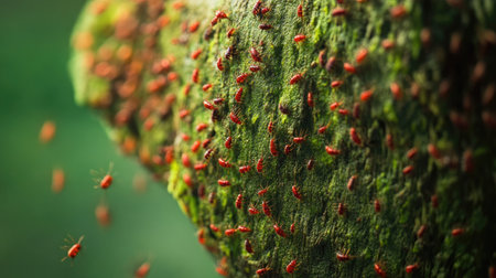 Macro photography high quality image of winged termites on tree trunk emphasizing translucent wings