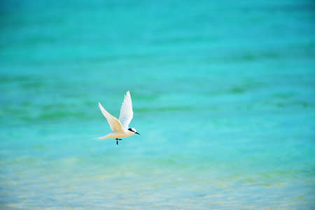 Common Tern Bird in Flight, Coastal Wildlife Photography, Ocean Background, Copy Space