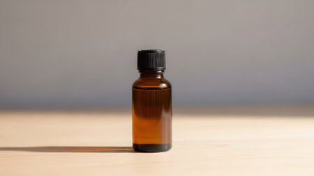 Manicured hand holding scented medicine bottle for aromatherapy relaxation generated by artificial intelligence