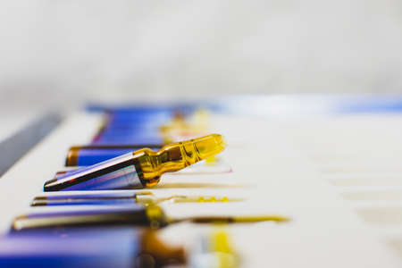 Ampoules with poison background. Concept of euthanasia and mercy-killing.