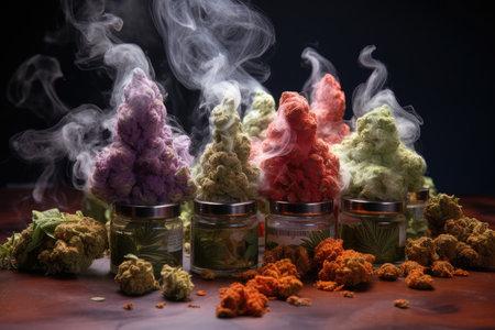 close-up of medical marijuana buds, with their distinct colors and textures, created with generative ai