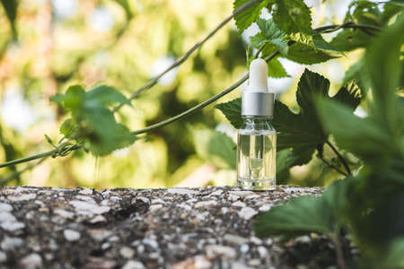 Natural herbal serum or oil in glass dropper bottle with a pipette Beauty spa product