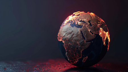 Stylish globe with continents glowing, showcased against a dark setting