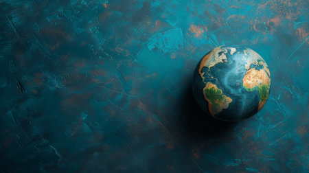 Detailed globe showcasing continents and oceans, emphasizing beauty of Earth with vibrant colors and textures. This symbolizes global unity and environmental awareness