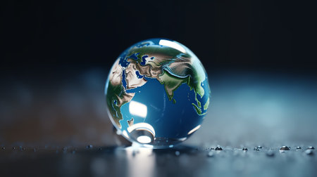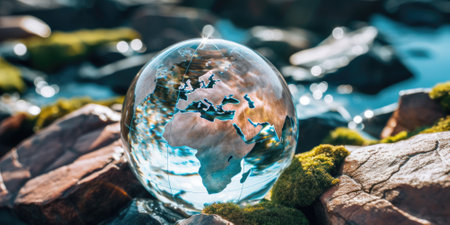 A stunning crystal globe captures the breathtaking view of Earth, showcasing vibrant land and water, symbolizing the delicate balance of our planet's environment.