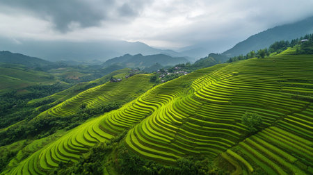 Landscape of the lined Green terraced rice field on the mountain