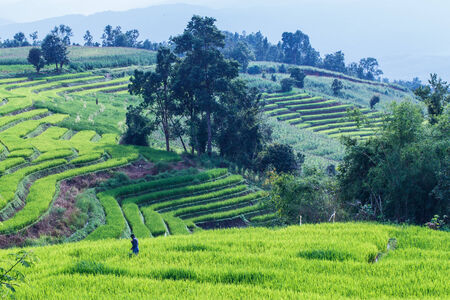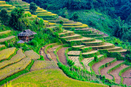 Landscape of Sunset Papongpieng Rice Terraces, Chiang Mai, North of Thailand.