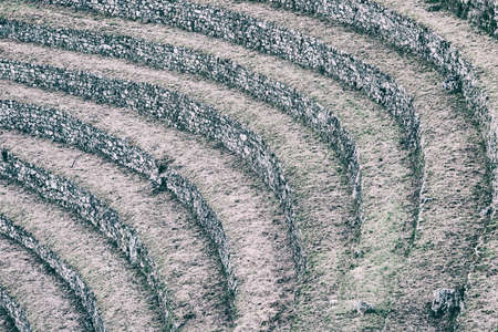 Detail of agriculture centre terraces covered by grass on the Inca Trail to Machu Picchu, Peru. Beautiful wallpaper.