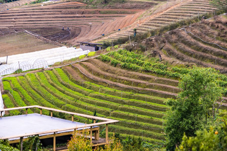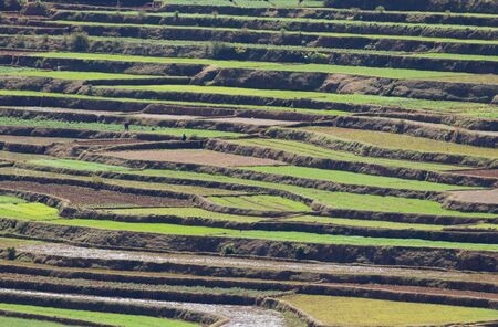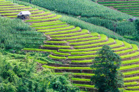Landscape of the lined Green terraced rice and corn field on the mountain