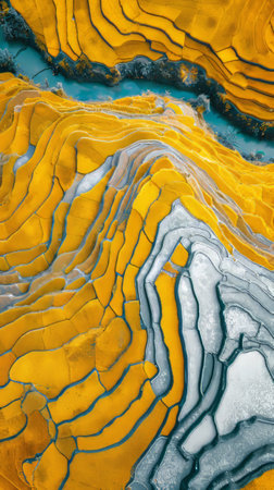 Aerial View of Yellow and Blue Water in a Vibrant Landscape