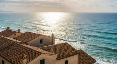 Italy. Sicily island. View of Cefalu. Roofs. In blur style