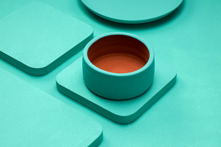 Aqua colour , solid aqua textured background with different shapes of objects placed over it