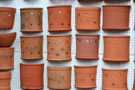 Background image, terracotta potted plants for garden decoration.