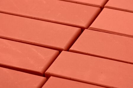 stack of red bricks, Shallow focus on front brick