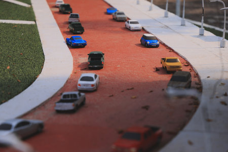 Innovative Traffic Model Featuring Miniature Cars Displayed on a Busy Highway Setting