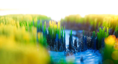 Abstract colorful background. Digital nature art of green winter forest. Abstract 3d topographic nature landscape. 3D Rendering.
