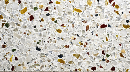 This image showcases a white terrazzo surface featuring colorful stone chips. Ideal for design projects, this texture offers a modern and aesthetic appeal perfect for a variety of applications.