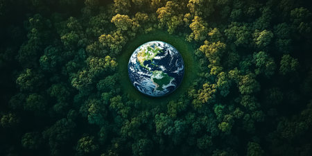 Aerial View of Lush Green Forest with Globe Earth Illustrating Healthy Planet for Future Generations