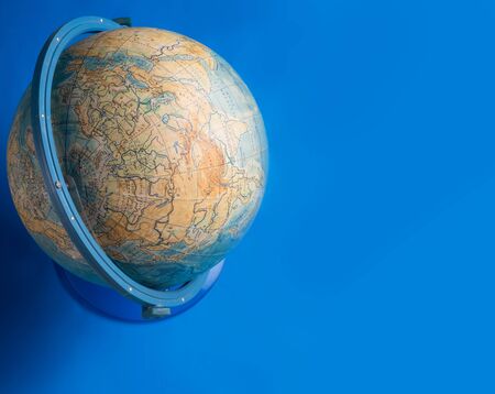 Globe of the Earth on a blue background. Ecology, globalization, environment concept.