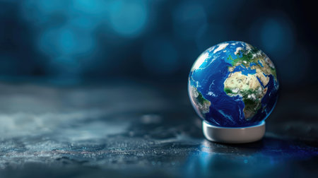 Detailed globe showcasing continents and oceans, emphasizing beauty of Earth with vibrant colors and textures. This symbolizes global unity and environmental awareness