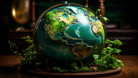 A stunning crystal globe captures the breathtaking view of Earth, showcasing vibrant land and water, symbolizing the delicate balance of our planet's environment.