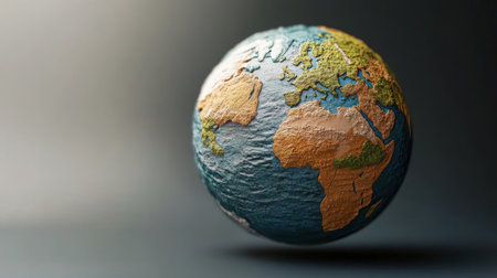 Detailed Terrestrial Globe Showcasing Earth s Continents and Landscapes on Grey Studio Background