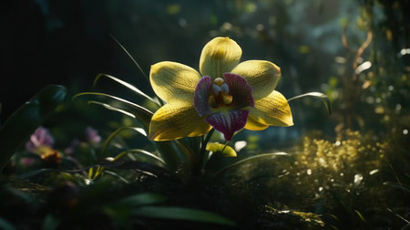 Wild orchids in lush forest., generative AI