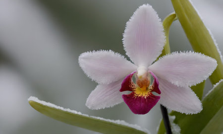 A blooming orchid with intricate flowers in close-up
