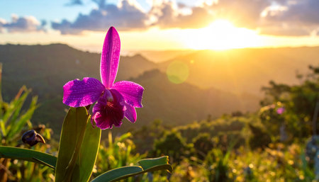 Beautiful purple orchid on the mountain at sunset, Thailand.