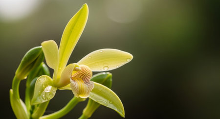 Beautiful orchid flower with a diffused green background