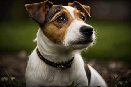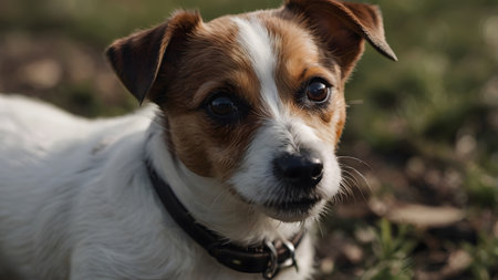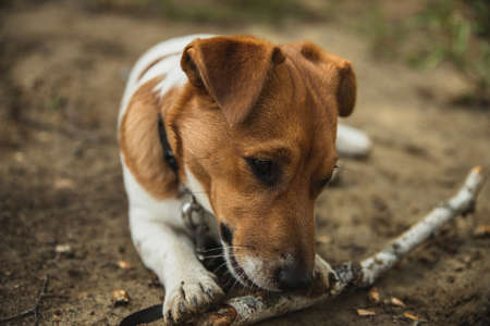 Portrait of a Jack Russell Terrier puppy in the spring forest.