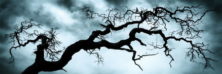 Spooky Silhouette Twisted Oak Tree Dark Stormy Sky Nature art old big mood wild scary image photo