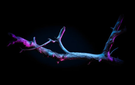 abstract tree branch on black background with blue and pink lighting effect