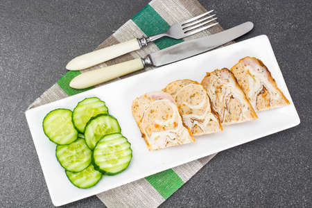 Stuffed chicken with omelette, meat and mushrooms Studio Photo