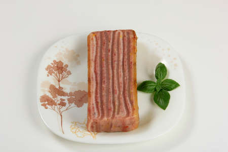 Sliced Pig skin jelly slice plate. pork trotter aspic with spices