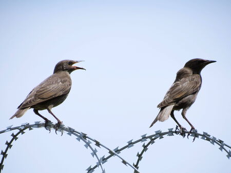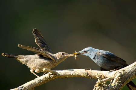 Juvenile starling squarking at an adult for food