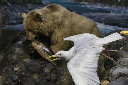 Close up shot of dangerous & aggressive brown bear fight each-other.