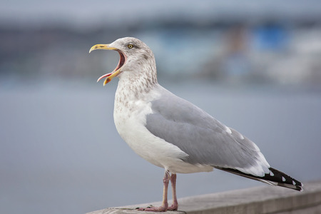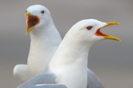 Closeup of two seagulls singing during springtime in city. Sweden