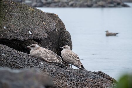 Two seagulls in Gudhjem of Bornholm, Denmark