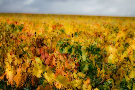 View of the vineyard of Champagne during autumn in the countryside of Reims in France