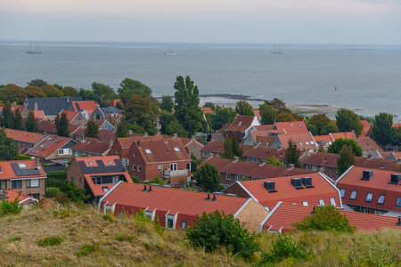 beautiful skyline of domburg city take from the dunes, Zeeland, The Netherlands