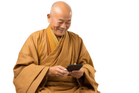 Bald Monk in Traditional Robes Holding Sacred Text