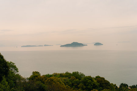 View of the Seto Inland sea and the islands from Kyukamura Setouchi Toyo, a scenic resort on Shikoku - Ehime prefecture, Japan