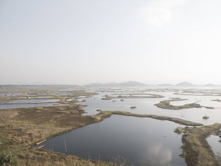 Sunset over the wetland with waterway at Suncheon Bay in South Korea