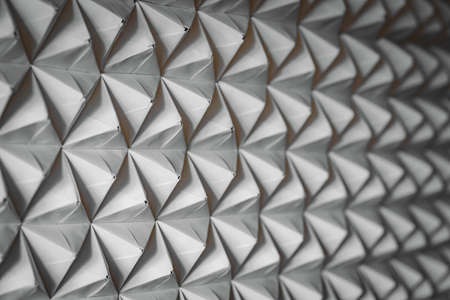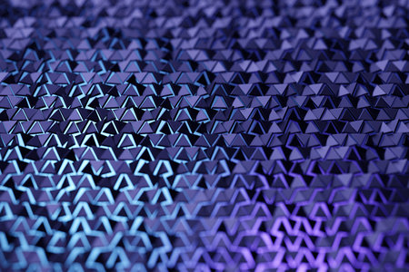 A metal wall made of many triangles. Triangles with sharp corners and gradient transitions.